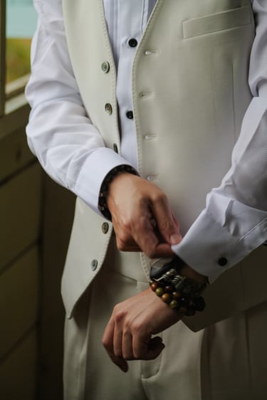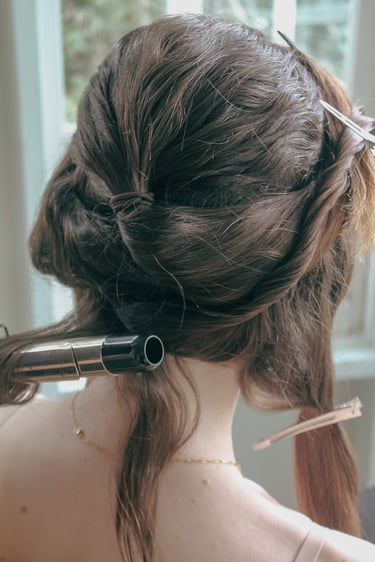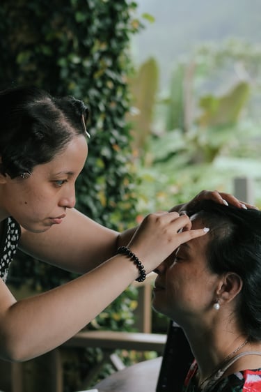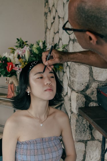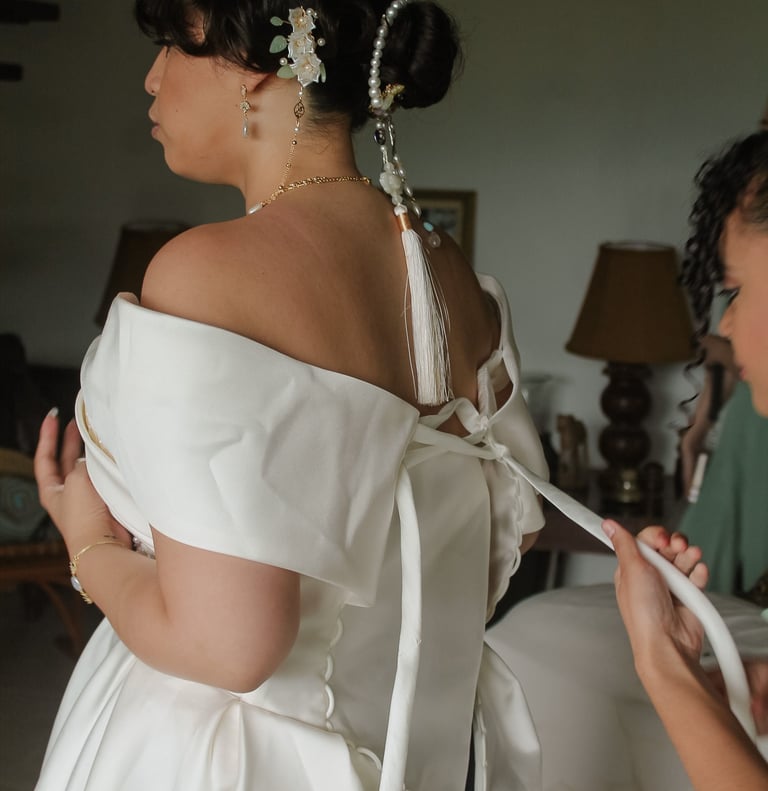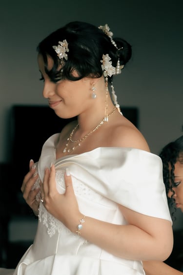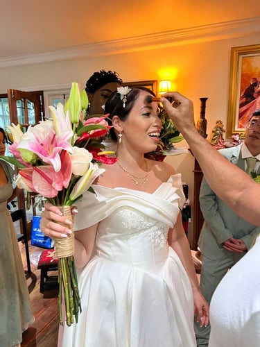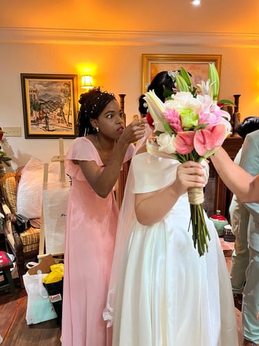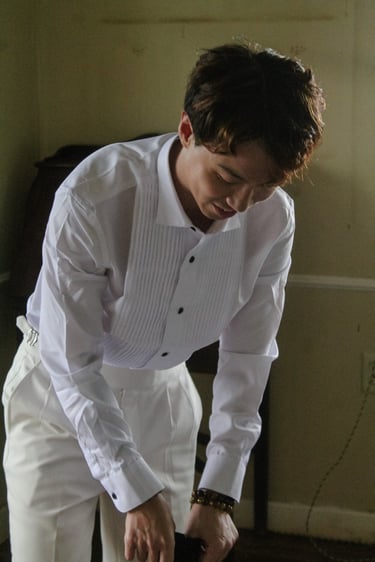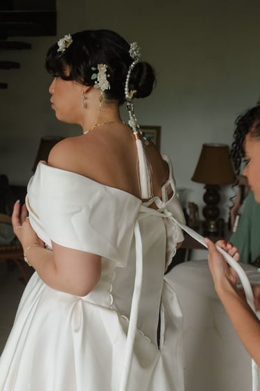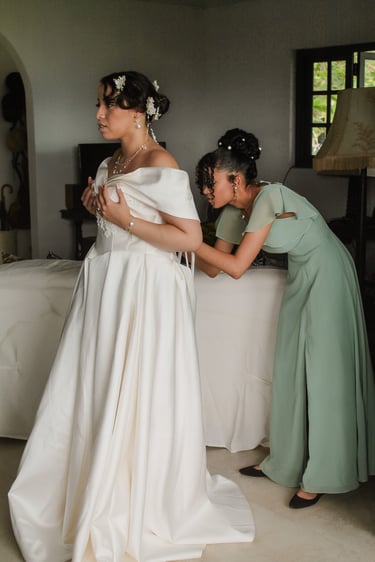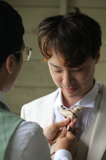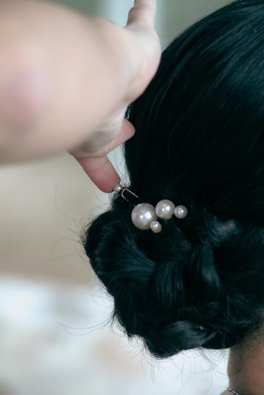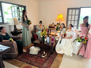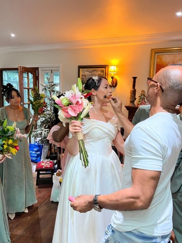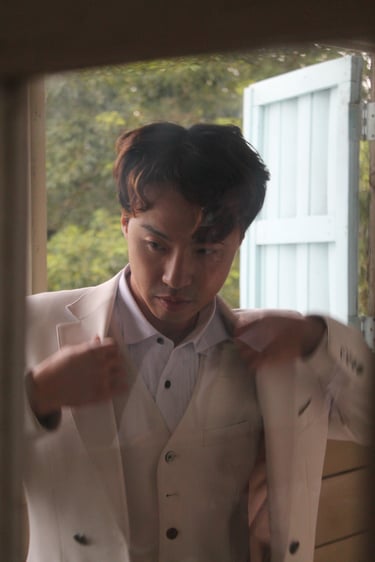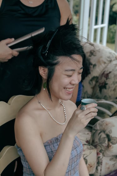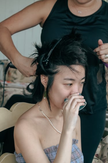 Events always begin with a round of Dad's brewed tea. Popo was zipping about- looking about- the decor, busy, and productive as always. Hair & makeup went into production, the assembly line working in tune. Kai was confined up to the top room like rapunzel, lest he see the bride.