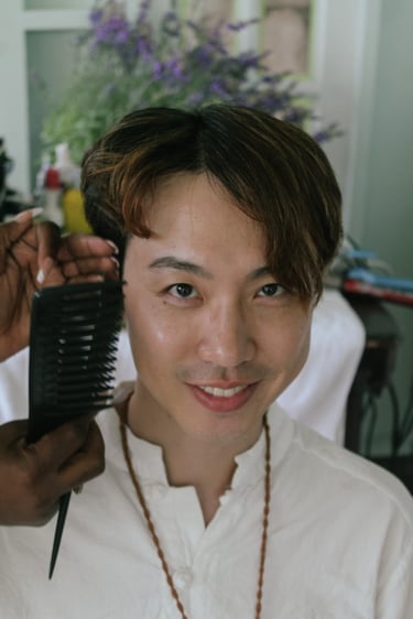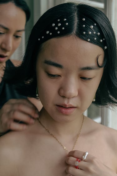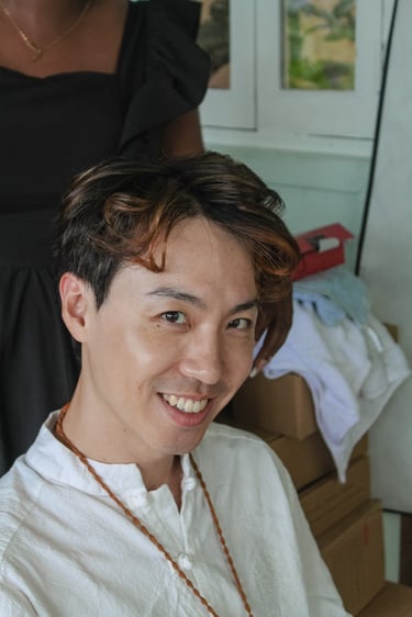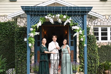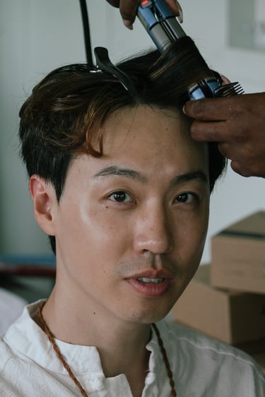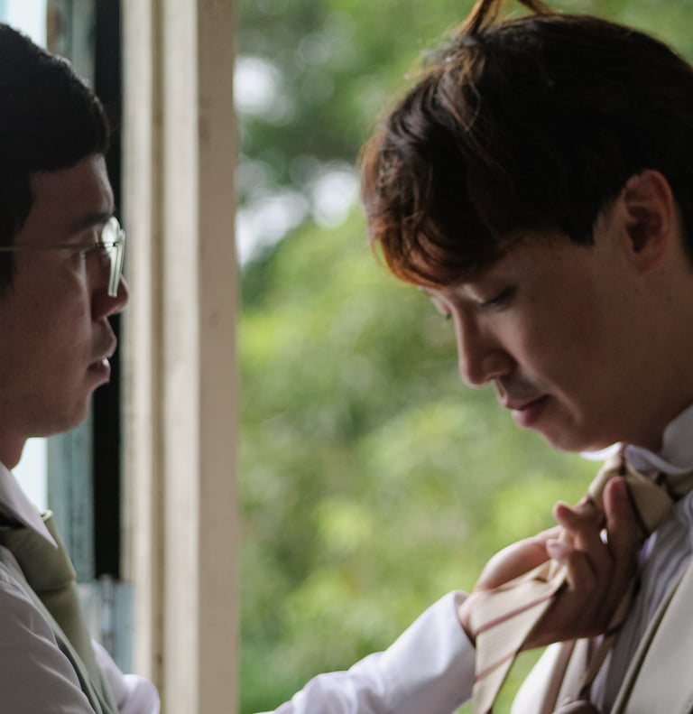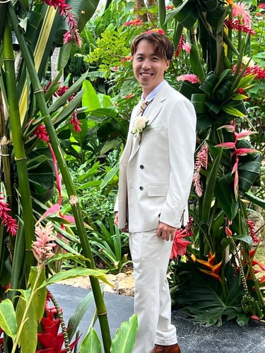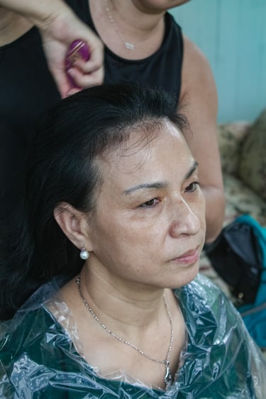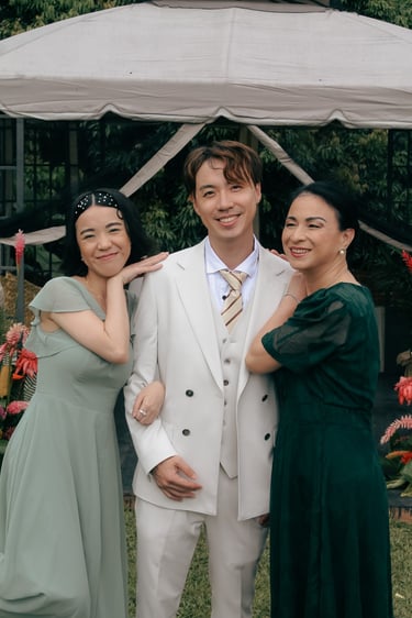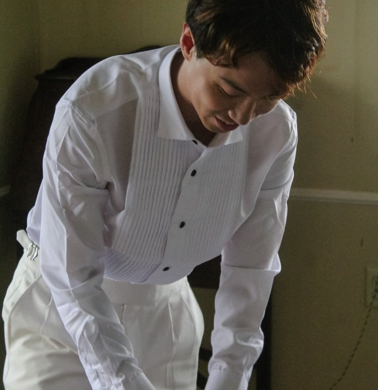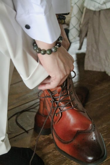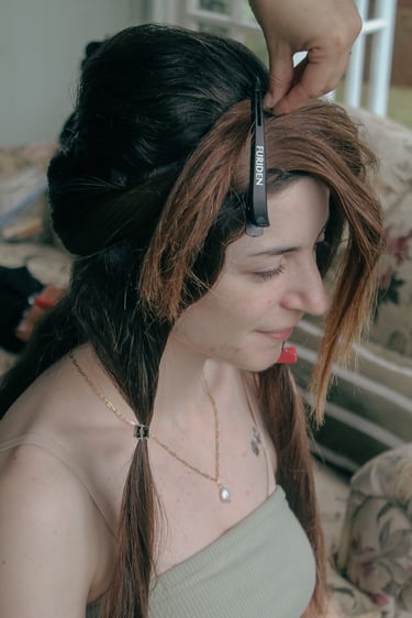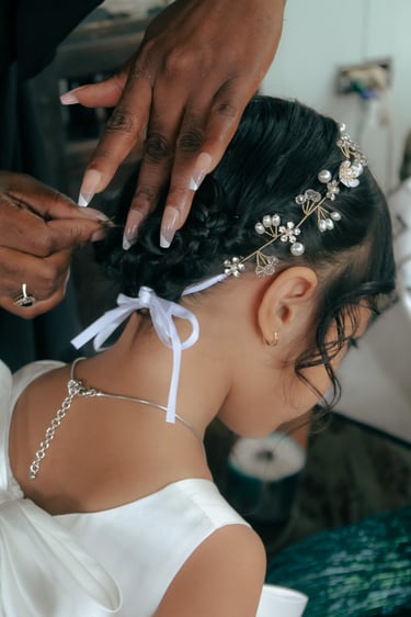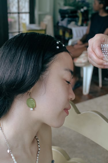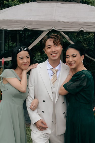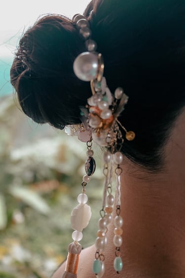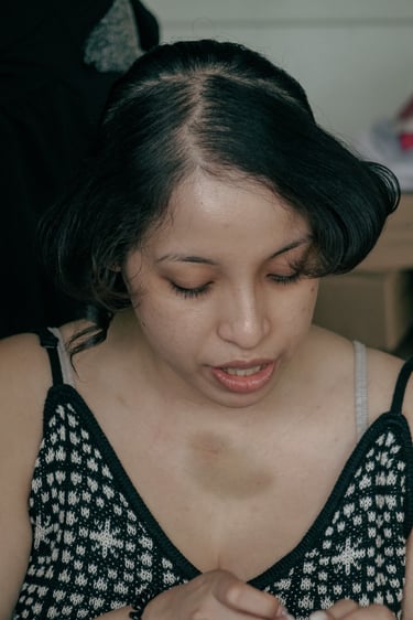 Events always begin with a round of Dad's brewed tea. Popo was zipping about- looking about- the decor, busy, and productive as always. Hair & makeup went into production, the assembly line working in tune. Kai was confined up to the top room like rapunzel, lest he see the bride.