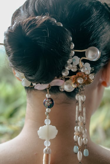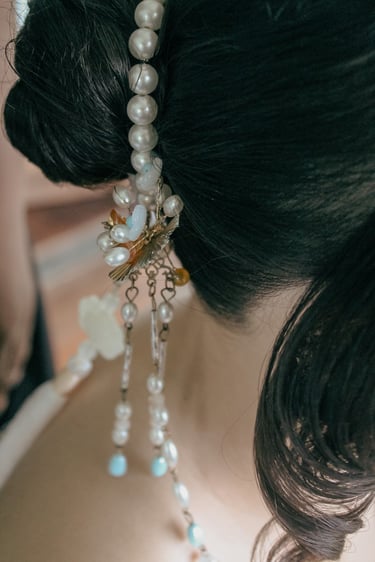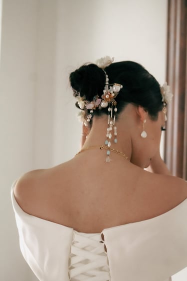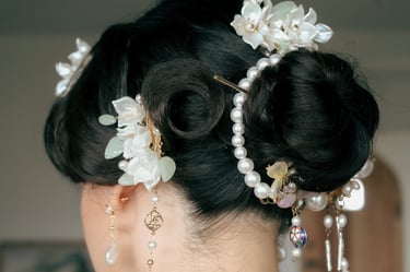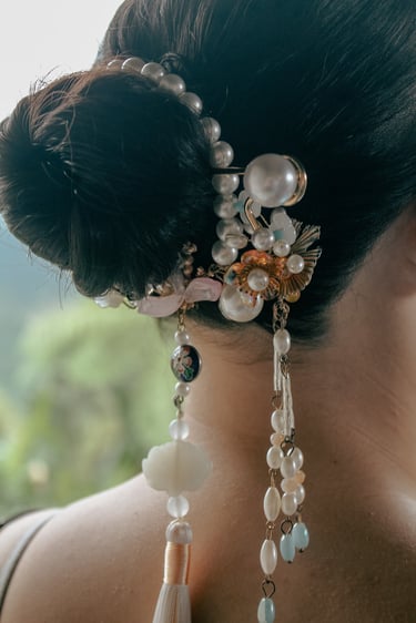 Chinese inspired hair for the bride beautifully executed by Chelsea
