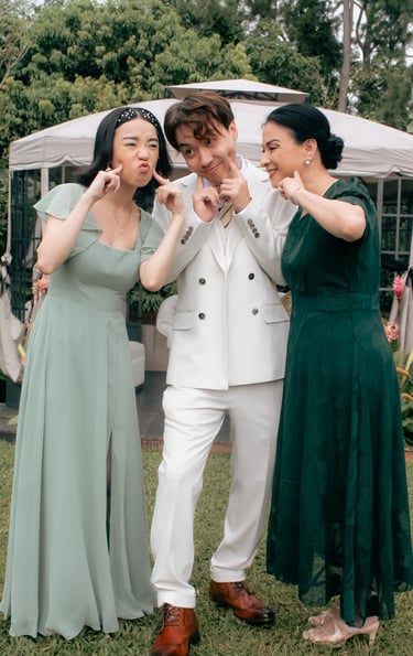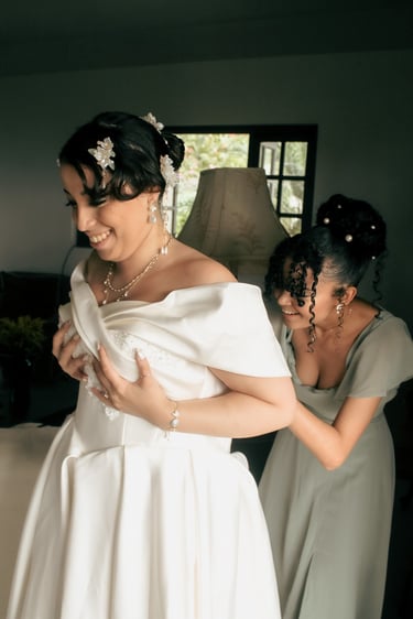 We packed up into Daddy's car early in the morning. There was not a space left inna 'e cyaar. The back packed up to the brim! Everything accounted for....except the wedding dress Rae magically forgot. Luckily the bridesmaids are used to them, and the checklist got read-out before we did leff-out. We were hyped the whole way. Always a roller-coaster in Daddy's car. The sun shined for us all morning. There were no signs of the rain that was surely to come when most critical.
