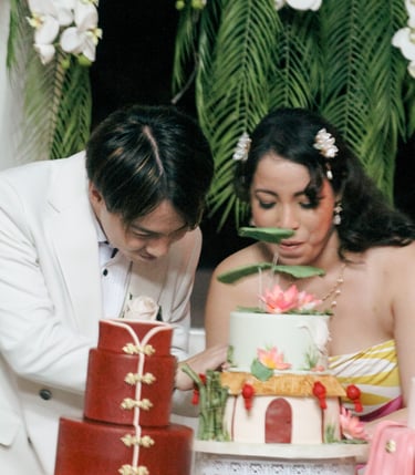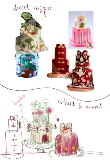 For the cake design, I hand drew something that brought a bit of an Asian element to the traditional Jamaican wedding cake hoping Selena Wong, our cake designer, could bring the message to life. As we all now know, she did and it was a fantastic testament to the melding of our cultures and my cultures :)