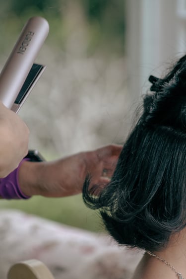 Events always begin with a round of Dad's brewed tea. Popo was zipping about- looking about- the decor, busy, and productive as always. Hair & makeup went into production, the assembly line working in tune. Kai was confined up to the top room like rapunzel, lest he see the bride.